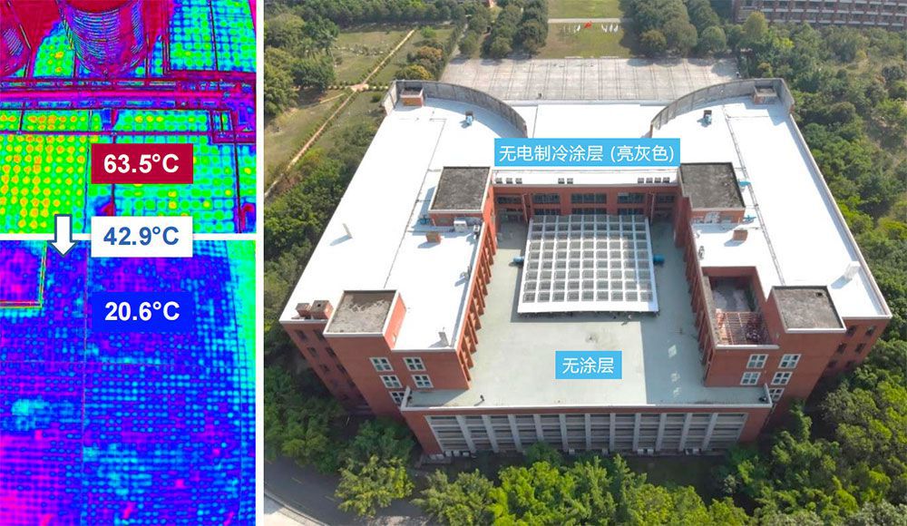 The outdoor surface temperature is reduced by 42.9°C.